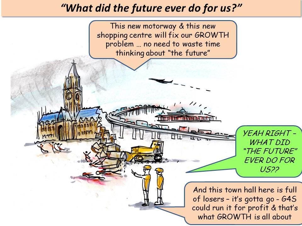 Our whole future here is at stake – so we asked ourselves (before and after), is anyone thinking all this through?? what are all the possibilities and probabilities?? Where are the future studies, strategy analysis, or foresight techniques? We tried some DIY foresight at various points to ‘think it through’. Anyway, the big question is, which scenario is more likely?? The experts can’t say …. This time it’s all down to the people…